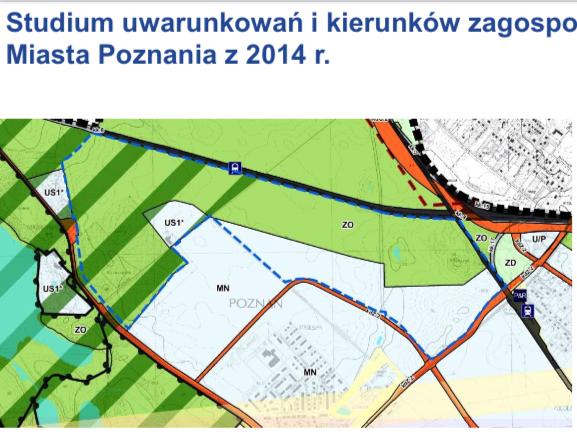 Dzięki współpracy z Miejską Pracownią Urbanistyczną w Poznaniu, Prezydentem Bartoszem Gussem oraz Prezydentem Jackiem Jaśkowiakiem ratujemy przed zabudową na Strzeszynie 35 ha zieleni! Względem Studium z 2014r. (pierwsza grafika) tereny położone na północ od Biskupińskiej, a na wschód od dalszej części Literackiej (lasek, oczko wodne i pola dookoła) pozostaną niezabudowane.